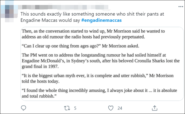 那么莫里森在当年真的发生了大小便失禁事件了吗?其实这并不重要,因为澳洲公众们并不是特别关心,只是参与这个过程乐呵乐呵罢了!