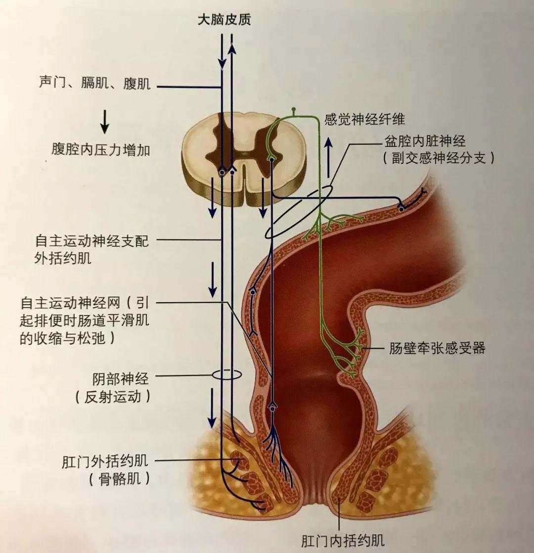 排便时肛内括约肌舒张,会阴部冲动减少,骨盆肌肉松弛,腹肌收缩,膈肌收缩下降,一般还会伴随着憋气增加腹内压力,所以便秘时脸被憋的通红或者小朋友大便时很用力,小脸涨红等都是其屏气增加腹压的结果。
